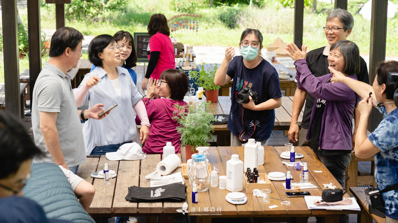 由池上鄉農會輔導的秋菊皂坊,結合池上鄉農會2.45公頃的大花園以及食農教育棚,靠著完善的場域、完善的體驗程序還有秋菊老師生動活潑的解說方式,受到評審們的青睞,讓所有的來賓都玩得不亦樂乎。