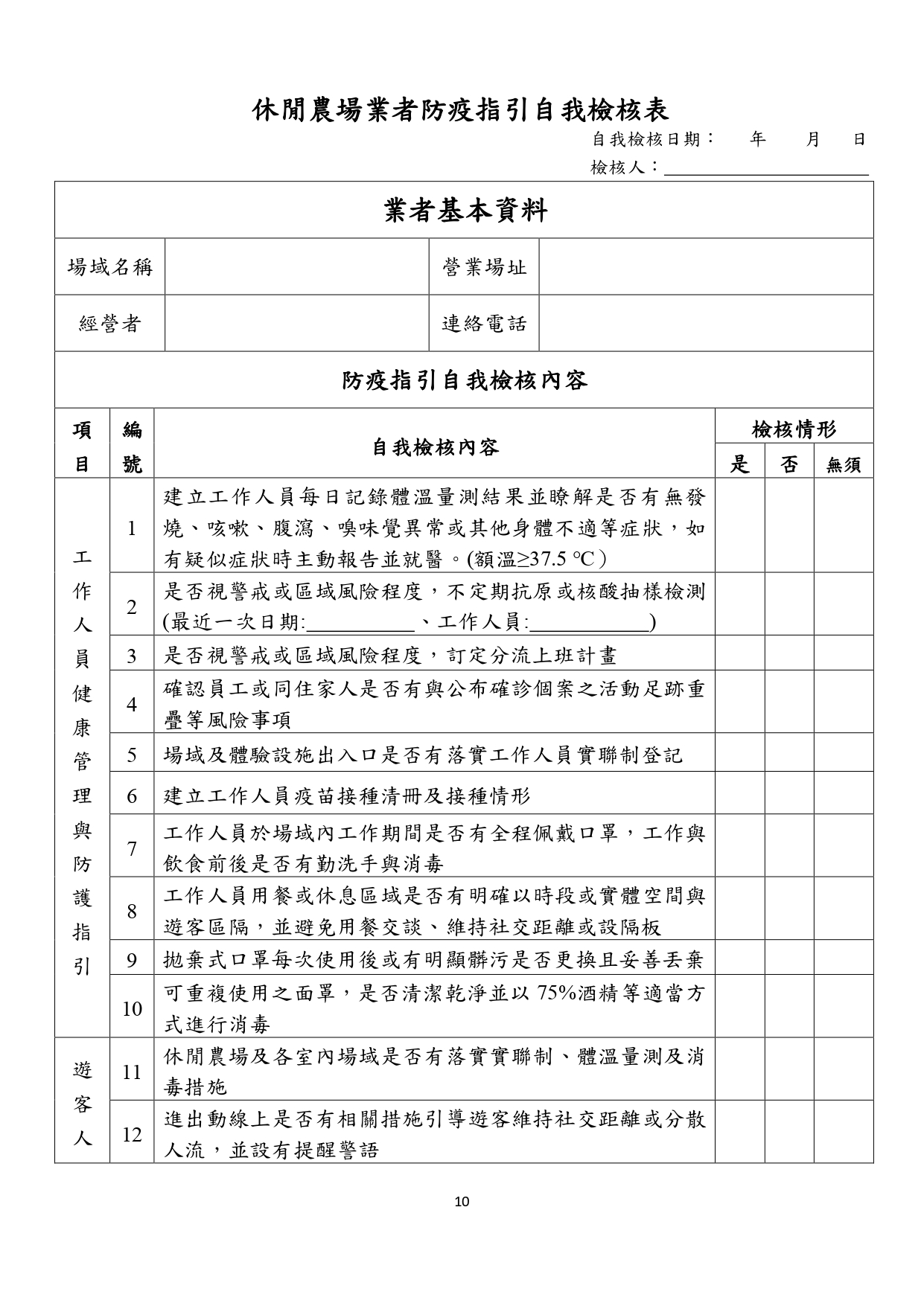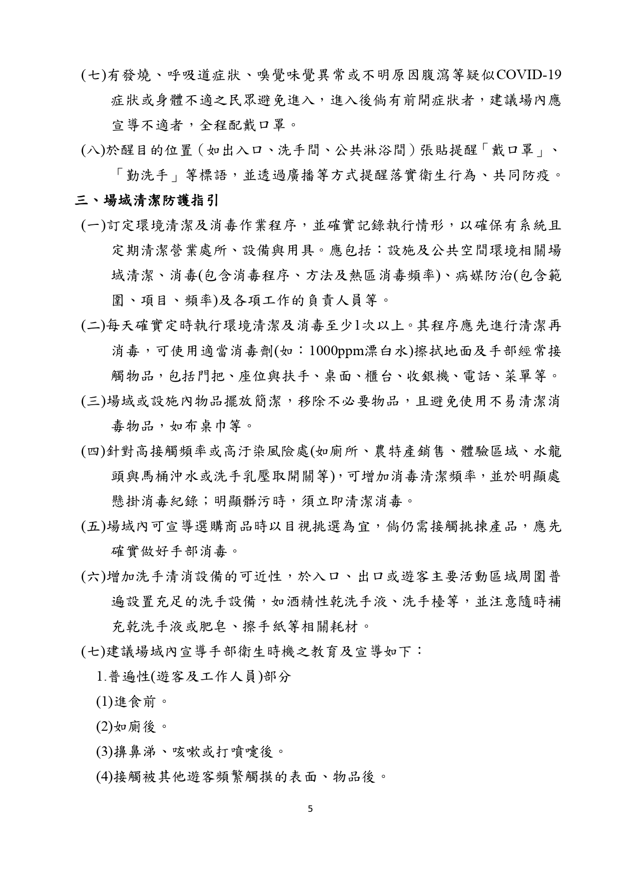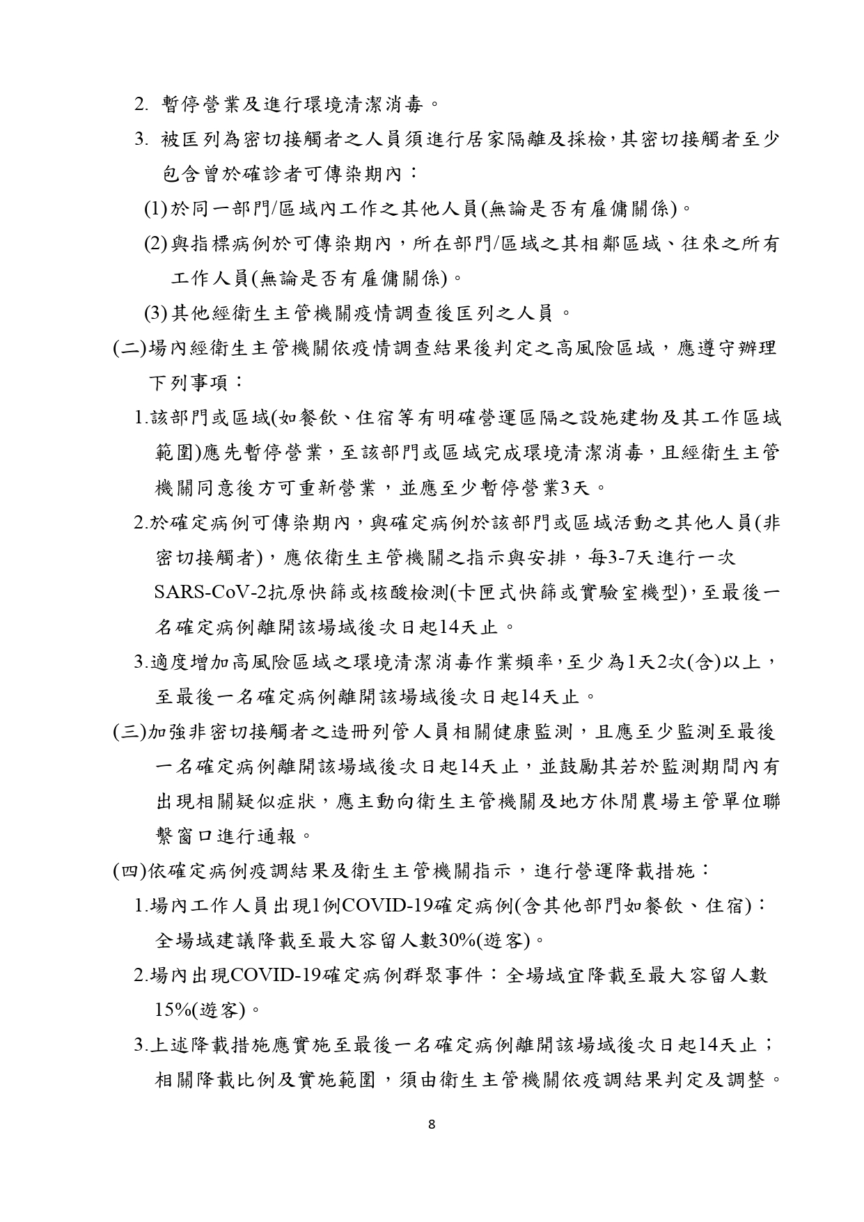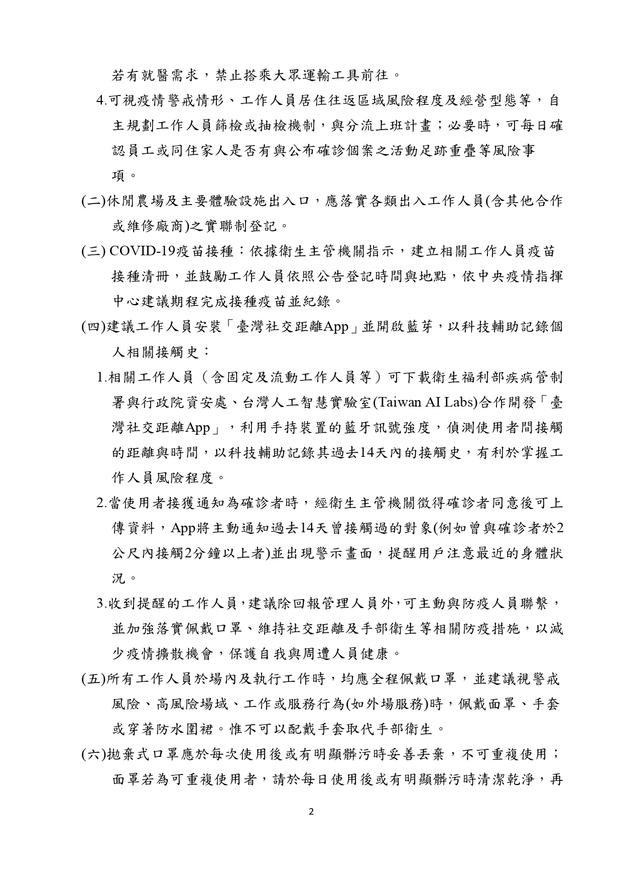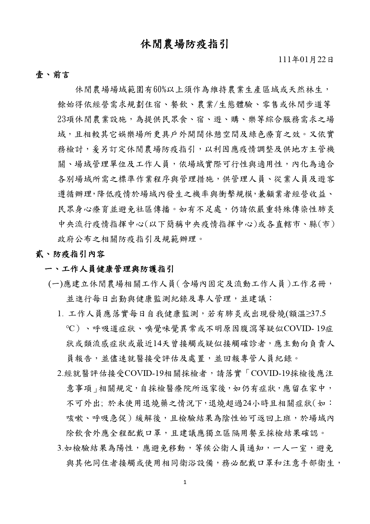 農委會休閒農場防疫指引