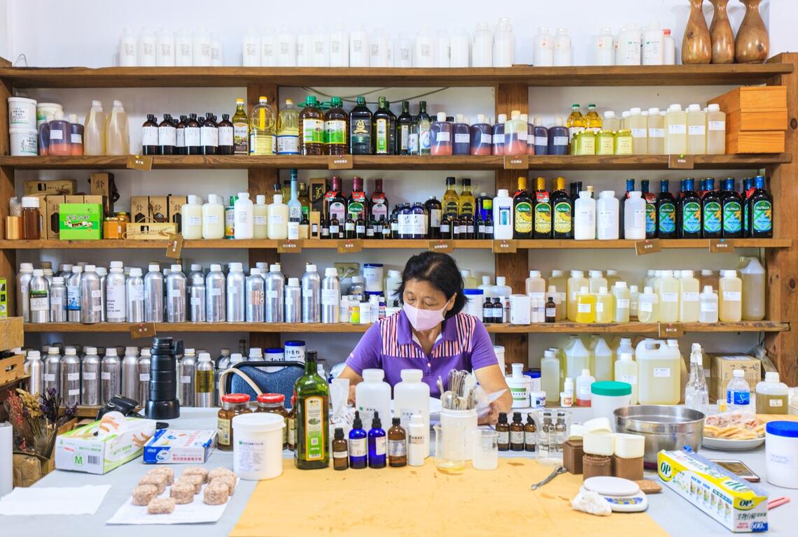 在池上定居二十年的手工皂達人陳秋菊,從思考校園營養午餐廢油回收再利用開始,關注生態環保的議題。「讓自己生活的社區更環保、更健康、更適合下一代居住」,秉持這樣的信念,她一頭栽進創作手工皂的領域。秋菊自費研習並投入大量心力,從化腐朽為神奇的環保皂、到沙拉脫、洗衣粉等日常清潔用品,她一邊製作手工皂,一邊想著如何連結發展在地特色,將花東縱谷蘊藏的豐沛物產、及各式各樣精華融進色澤樸實的手工皂中,並適切地針對不同肌膚個性來調配用皂、沐浴乳配方,研發創意親子同樂的藝術琉璃皂和保養品教學 / DIY / 手工皂師資培訓等等。
