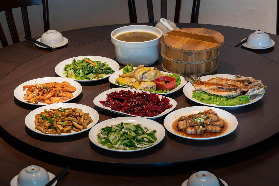池上放山雞/紅燒焢肉/青翠時蔬/客家小炒/客家鹹豬肉/紹興醉蝦/泰式檸檬魚