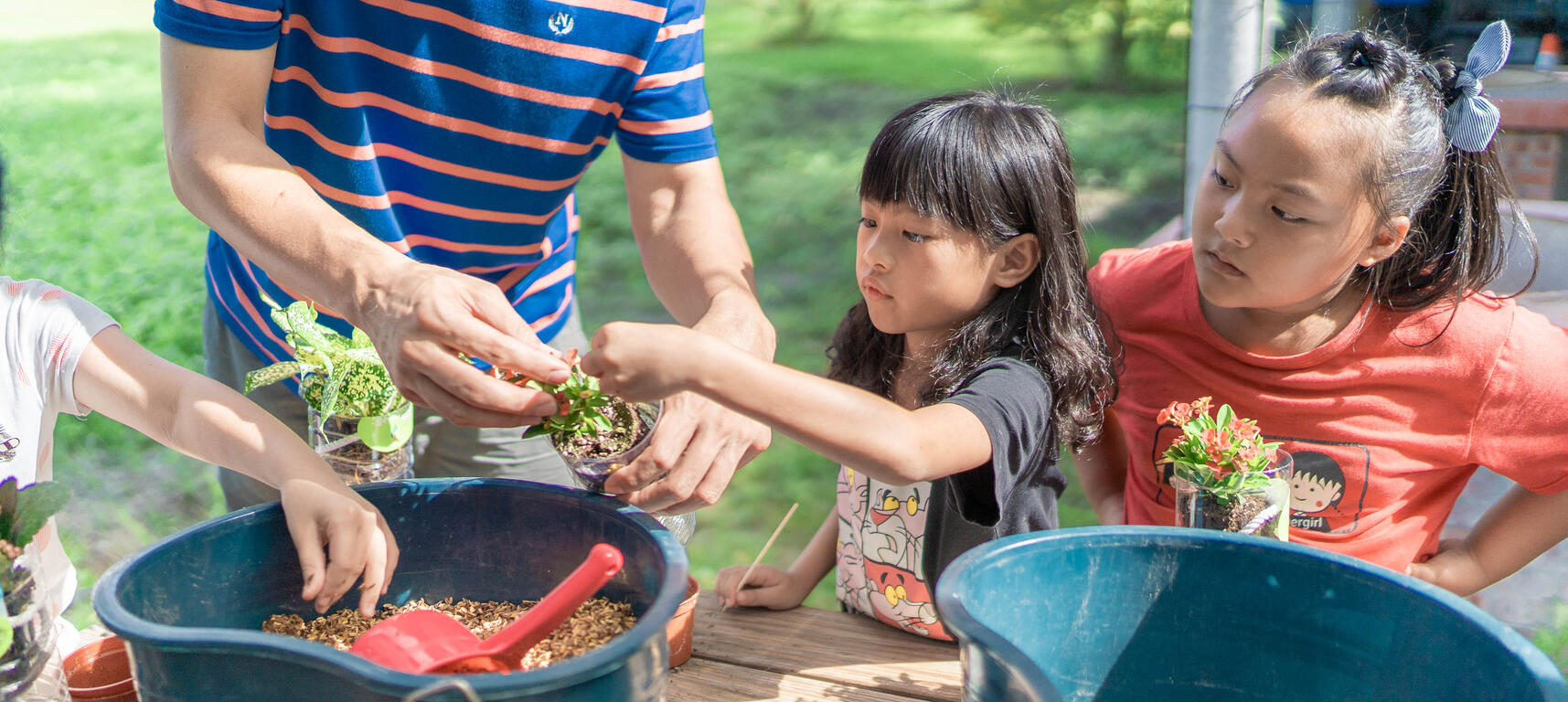 DSC03666在花海中,尋找可栽種的花草,加上粗糠發酵後的堆肥,製作成療癒身心的小盆栽。