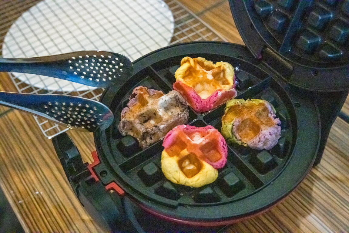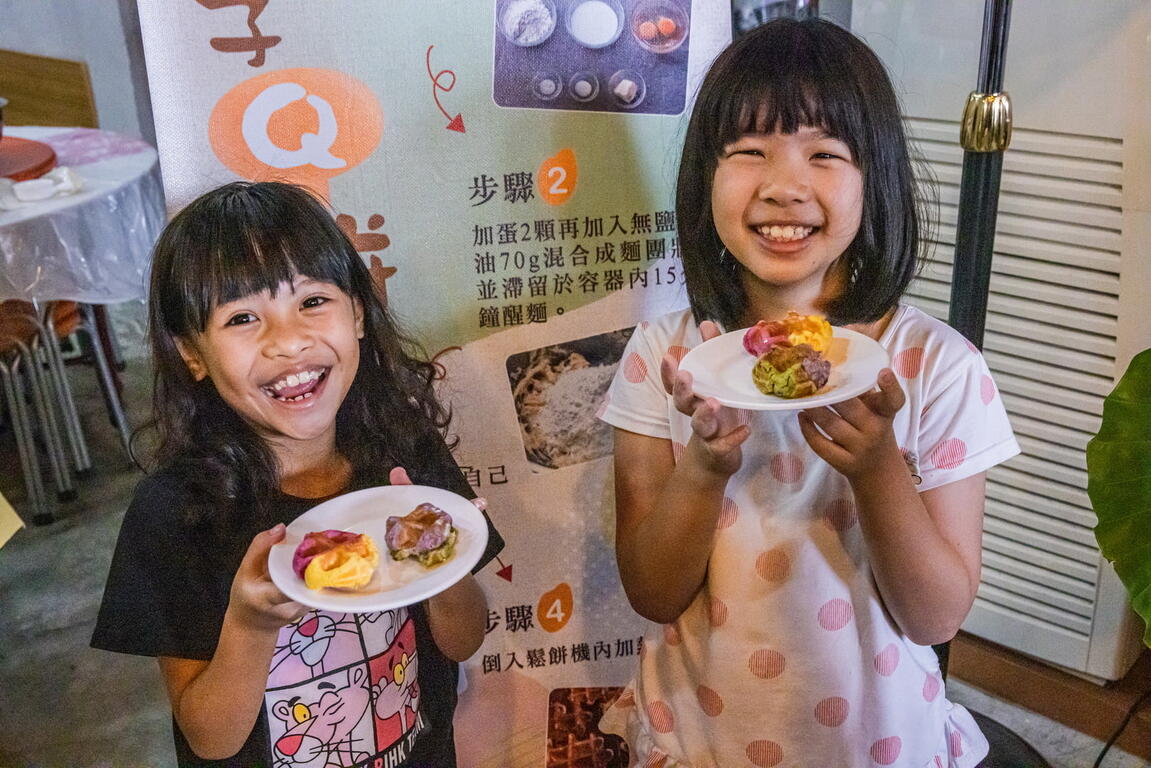 以原味香米,另添加在地食材運用池農契作紫米、當季火龍果、保存食南瓜粉、紅鑽石洛神、抹茶紅豆…等創新口味,變化出創新的多元米食,調整QQ米格子烤出外酥內Q的口感,並能帶回300公克/包QQ米格子預拌粉回家添加自己喜愛的口味,以達多吃一碗飯用意。