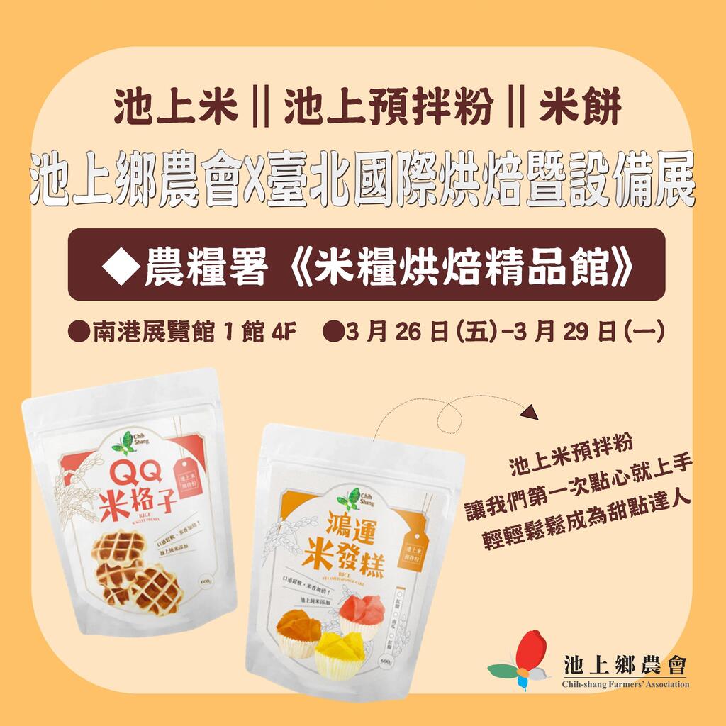 池上鄉農會X臺北國際烘焙暨設備展 農糧署《米糧烘焙精品館》 南港展覽館1館4F 3月26(五)-3月29日(一)