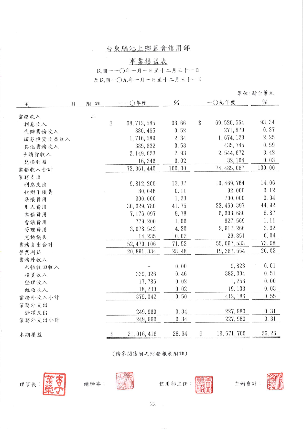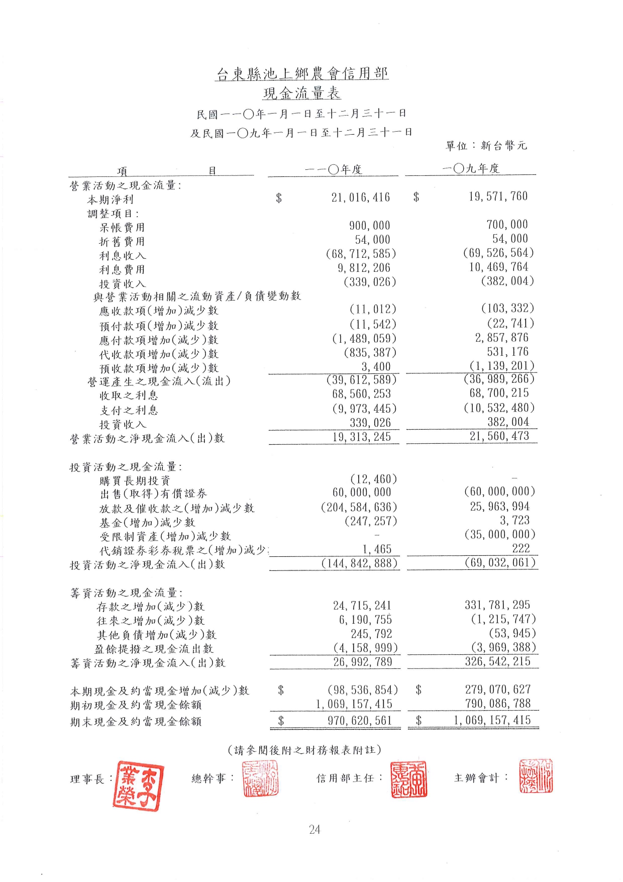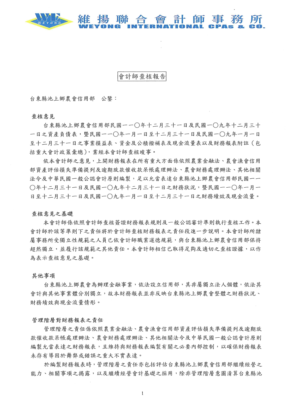 公告本會110年度信用部資產負債表、損益表、現金流量表、盈虧撥補表、會計師查核報告