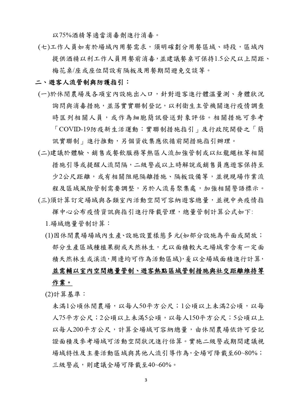 請轄內各產業團體、組織與業者場域內工作人員請盡速接種3劑COVID-19疫苗,提供行政院農業委員會休閒農場防疫指引供參。