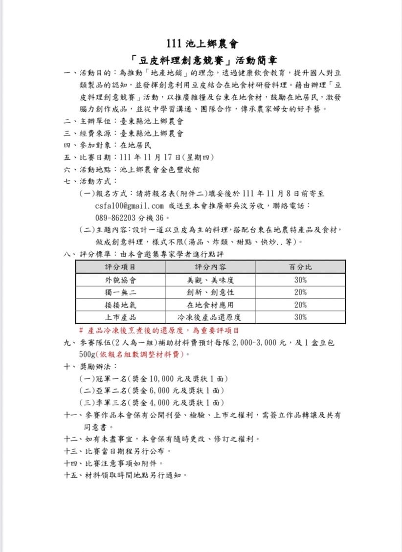 為推動「地產地銷」的理念,提升國人對豆類製品的認知,並發揮創意利用豆皮結合在地食材研發料理。辦理「豆皮料理創意競賽」活動,鼓勵在地居民,激發腦力創作成品。等你來報名唷!