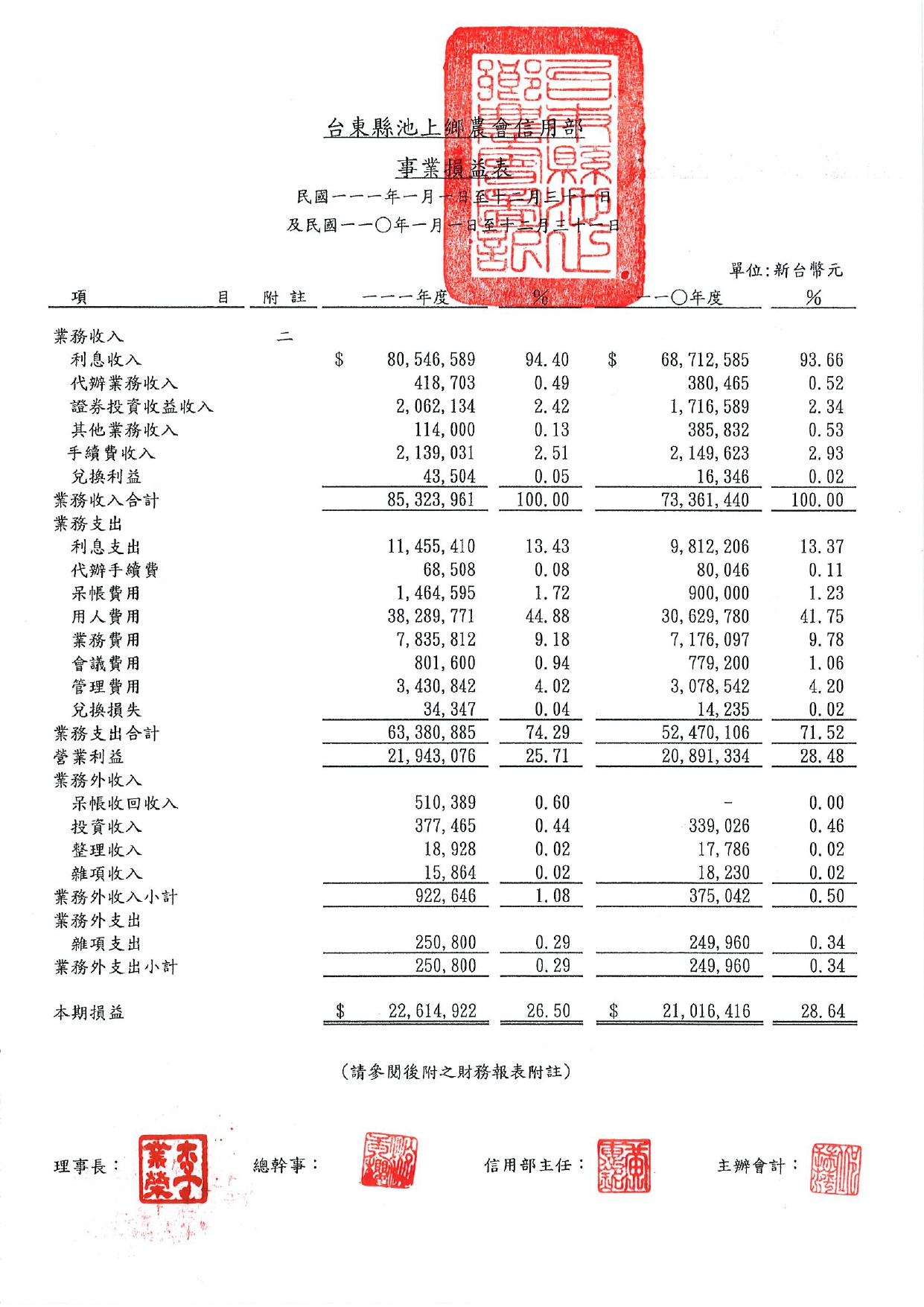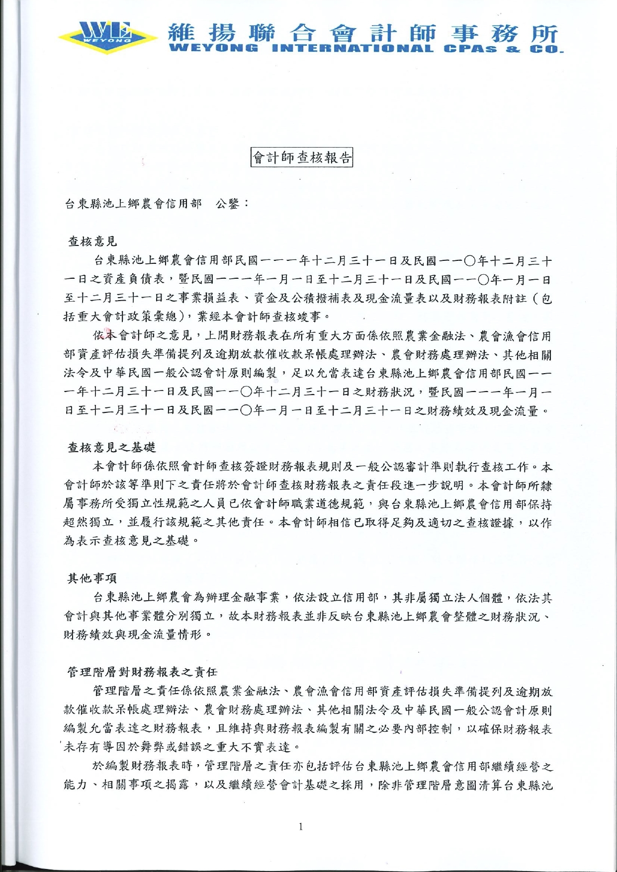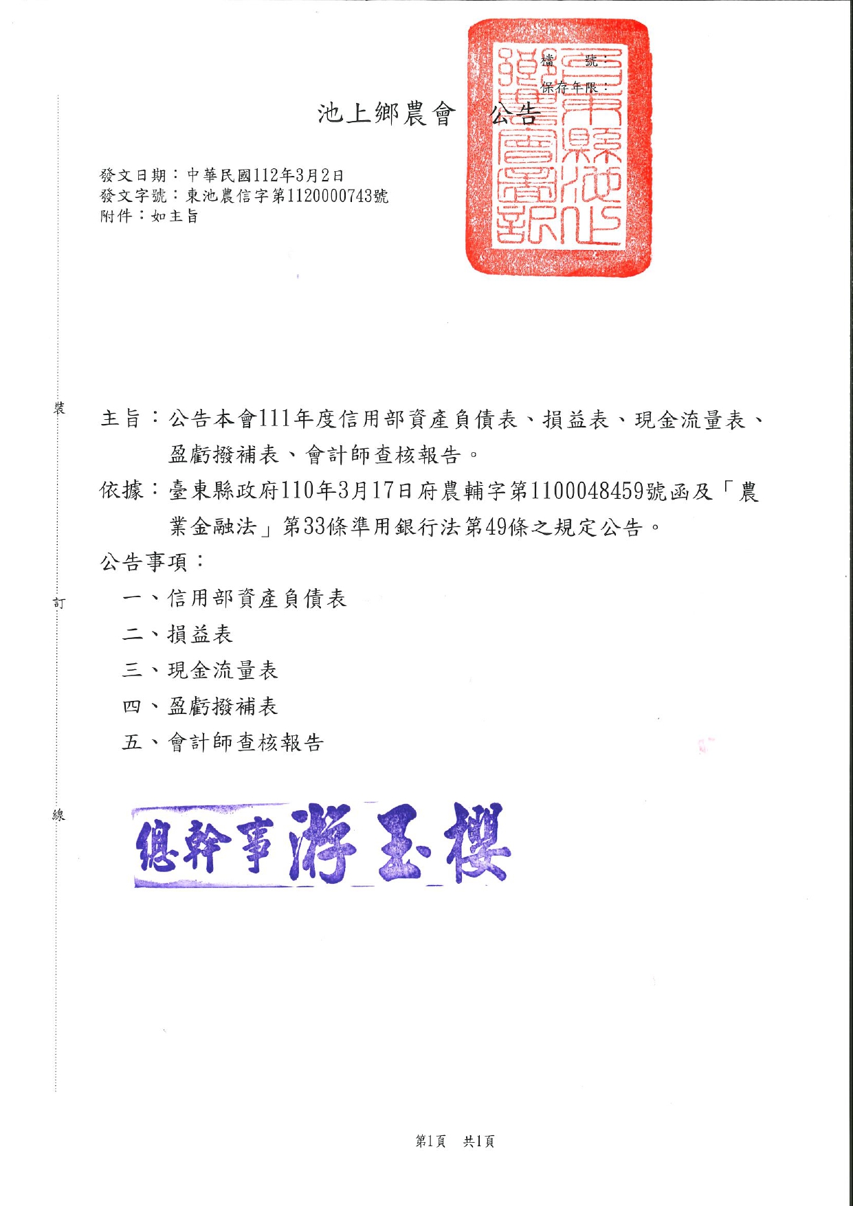 公告本會111年度信用部資產負債表、損益表、現金流量表、盈虧撥補表、會計師查核報告