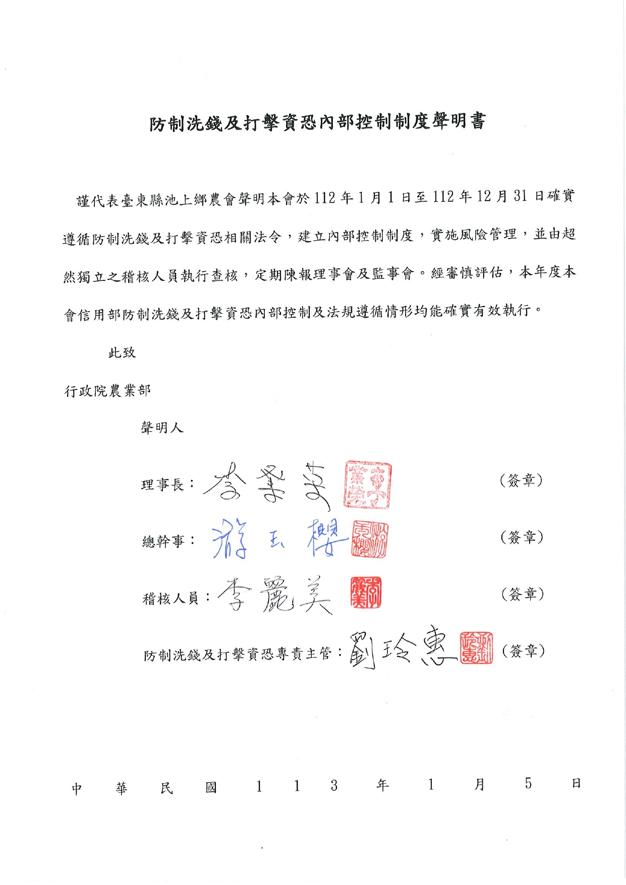 公告本會防制洗錢及打擊資恐內部控制制度聲明書