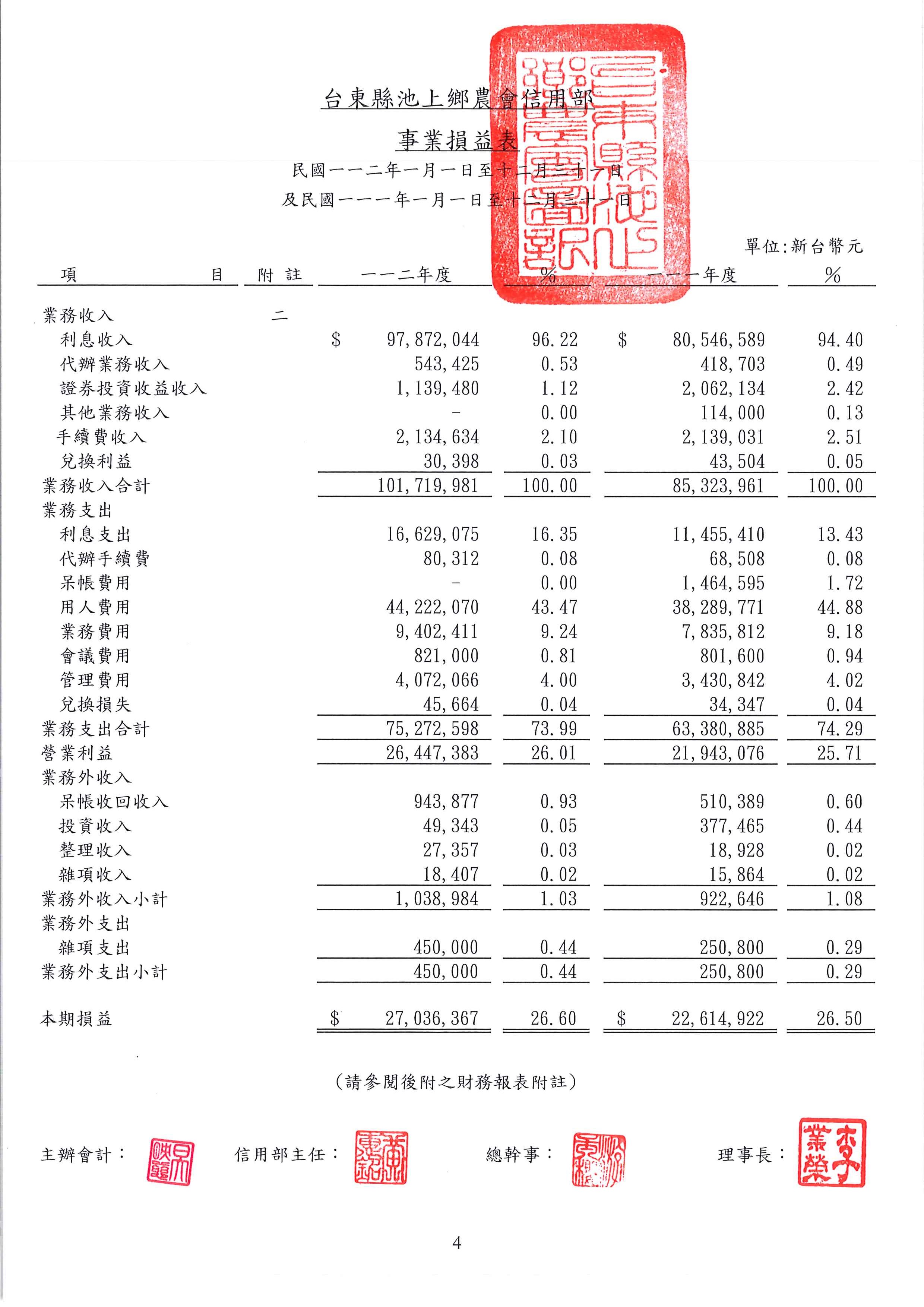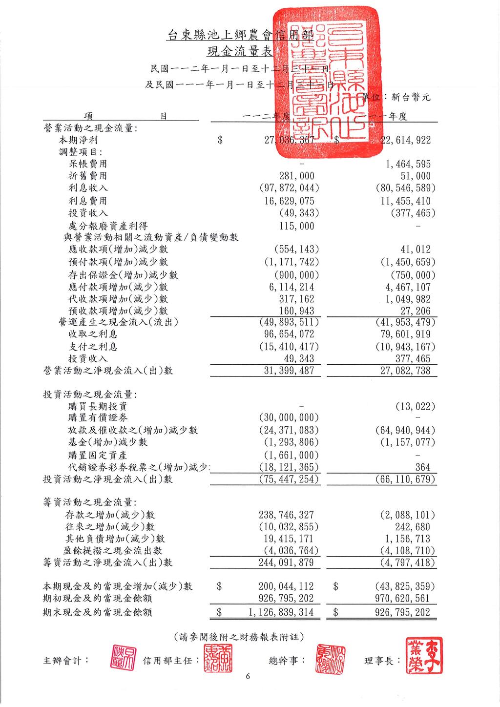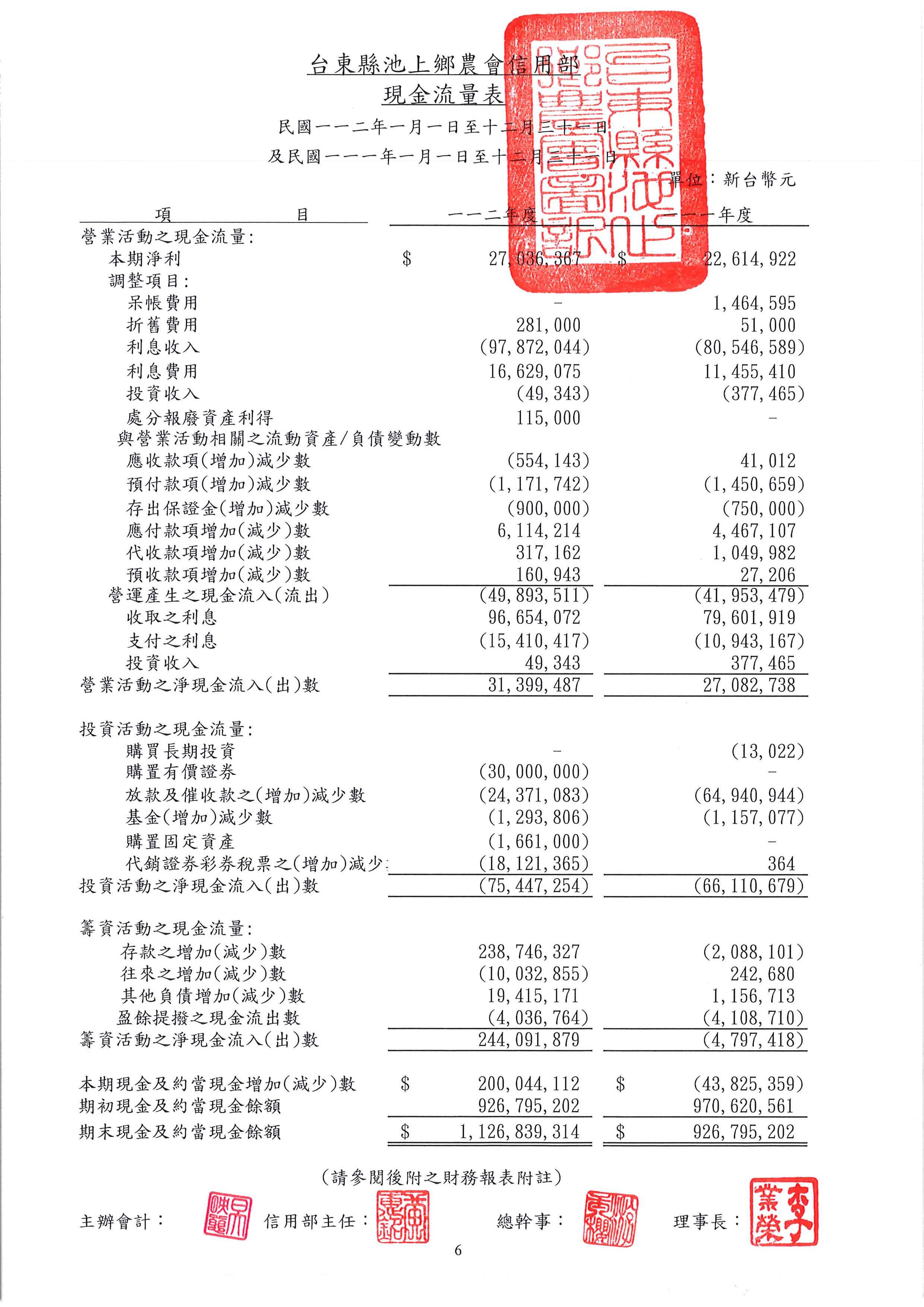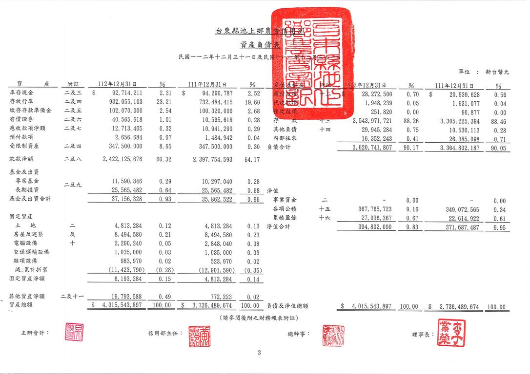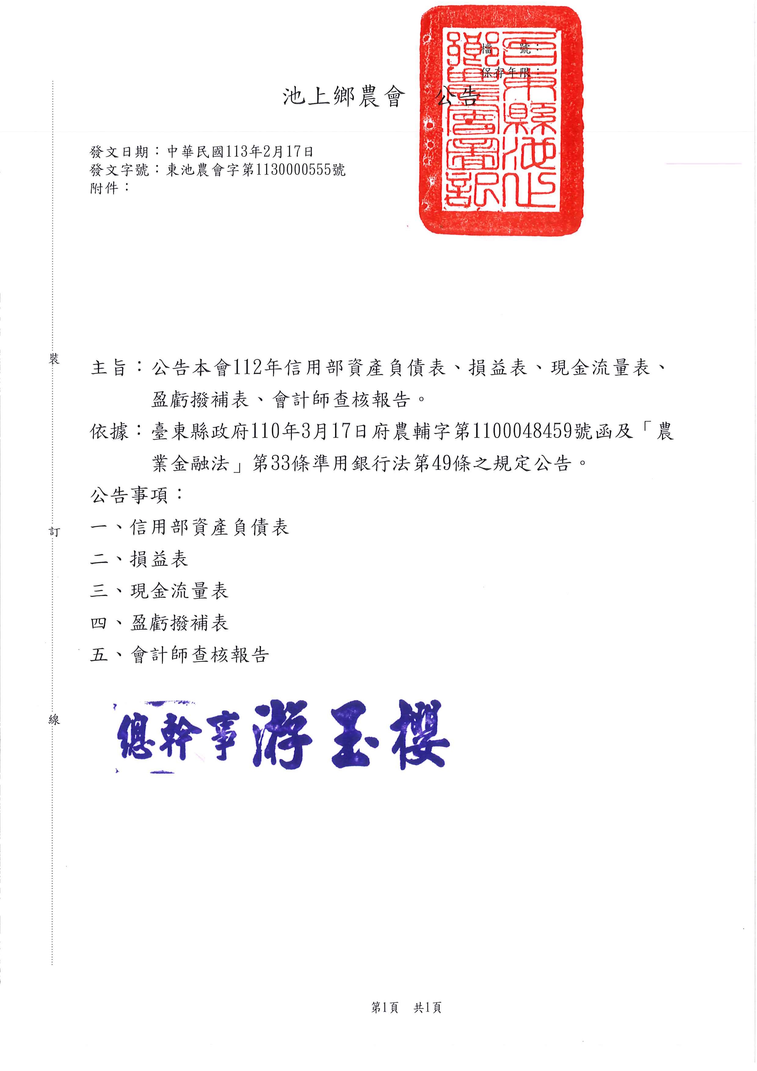 公告本會信用部112年度資產負債表、損益表、現金流量表、盈虧撥補表及會計師查核報告